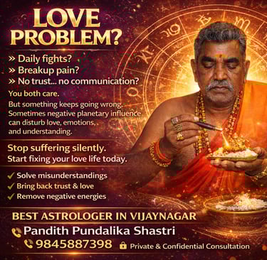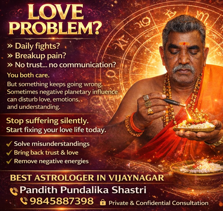 If you are facing challenges in your love life, marriage, or personal relationships, finding the right guidance can make all the difference. Pandith Pundalika Shastri, known as the best astrologer in Vijayanagar Bangalore, offers trusted and result-oriented astrological consultation to help individuals overcome emotional and relationship struggles with clarity and confidence.