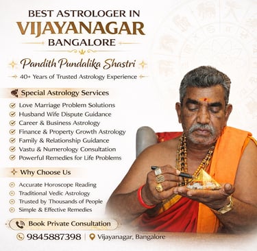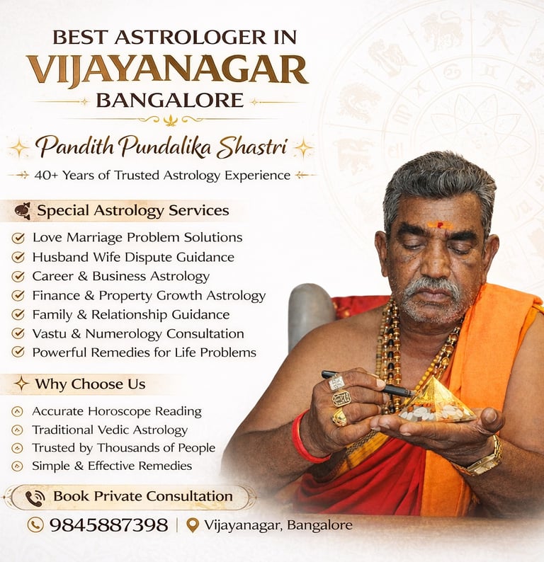 People searching for an astrologer in Vijayanagar Bangalore often choose Pandith Pundalika Shastri because of his experience and traditional approach to astrology. His consultations are focused on providing thoughtful interpretations rather than unrealistic promises.