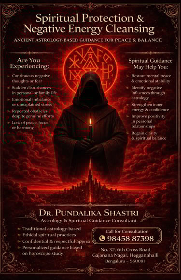 Dr. Pundalika Shastri provides astrology-based spiritual guidance in Nagarabhavi, Bengaluru, focusing on traditional knowledge, personal horoscope study, and ethical practices. The approach is rooted in ancient astrological principles and is designed to help individuals understand life patterns, emotional challenges, and personal strengths in a calm and respectful manner.