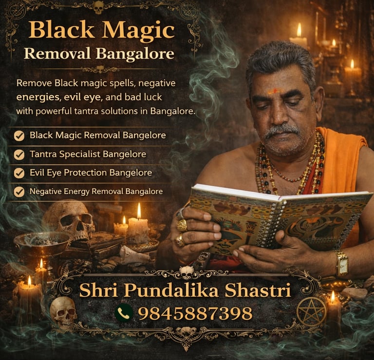 Are you facing continuous obstacles in life, sudden health issues, relationship conflicts, business losses, or unexplained negative situations? Many people in Bangalore believe such problems may be caused by negative energies, evil eye effects, or black magic spells. If you are searching for Black Magic Removal in Bangalore, Shri Pundalika Shastri offers trusted spiritual guidance and traditional tantra solutions to help restore peace and positivity in your life.