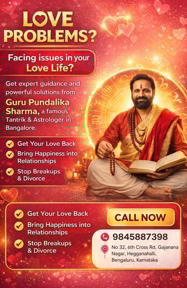 People searching for a love problem solution astrologer in Nagarabhavi, relationship guidance in West Bangalore, or astrology consultation near Nagarabhavi often look for someone who listens patiently and explains solutions clearly. Shri Pundalika Shastri focuses on understanding personal concerns such as relationship stress, emotional imbalance, marriage delays, family opposition, or misunderstandings between partners.