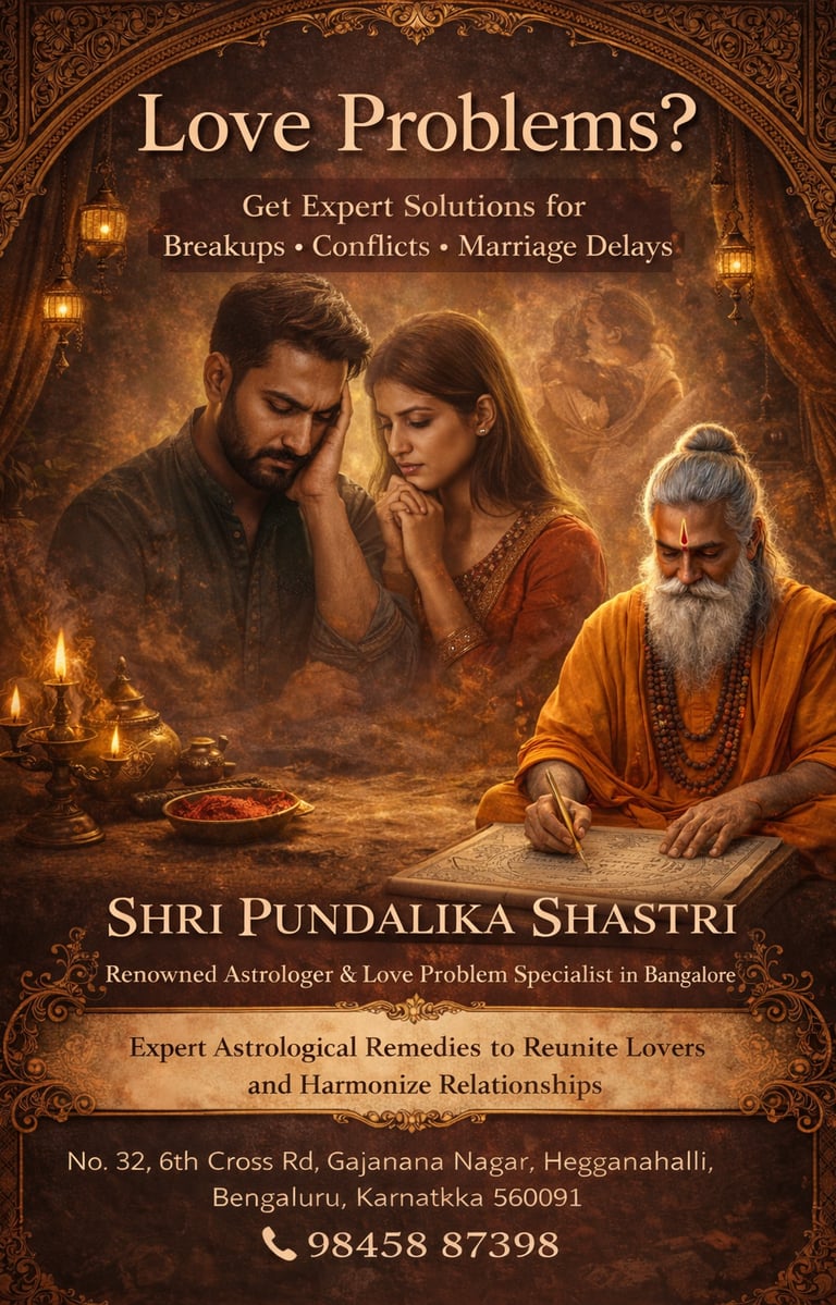 Relationship challenges can deeply affect emotional well-being, peace of mind, and family harmony. If you are facing persistent love problems, misunderstandings with your partner, frequent arguments, emotional distance, or delays in marriage, seeking structured guidance can help you gain clarity and direction. Shri Pundalika Shastri, a well-known astrologer and love problem specialist in Rajajinagar, Bengaluru, offers traditional astrological insights to help individuals better understand relationship patterns and life influences.