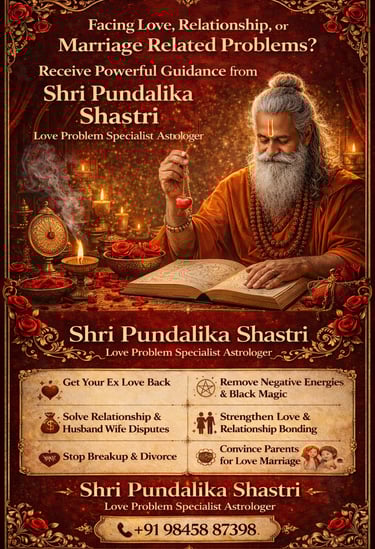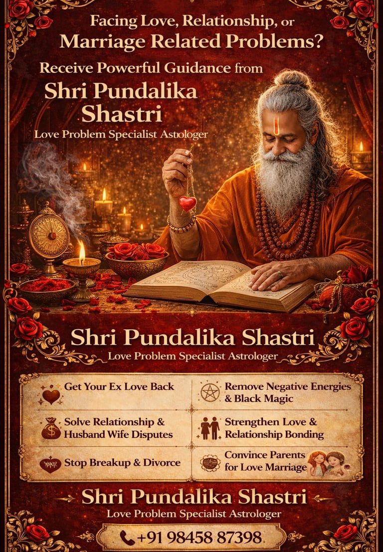 Many people consult a love problem specialist astrologer in Rajaji Nagar when facing recurring relationship issues, communication gaps, or emotional confusion. Astrology can help identify planetary influences that may affect compatibility, emotions, and timing. Based on this understanding, Shri Pundalika Shastri provides personalized guidance to help individuals approach their relationships with clarity and patience.