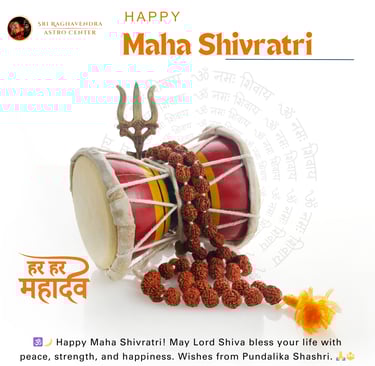 Maha Shivratri is one of the most sacred festivals dedicated to Lord Shiva, symbolizing spiritual awakening, inner strength, and divine blessings. On this auspicious occasion, Sri Raghavendra Astro Center extends heartfelt Maha Shivratri wishes to all devotees seeking peace, prosperity, and positive transformation in life.
