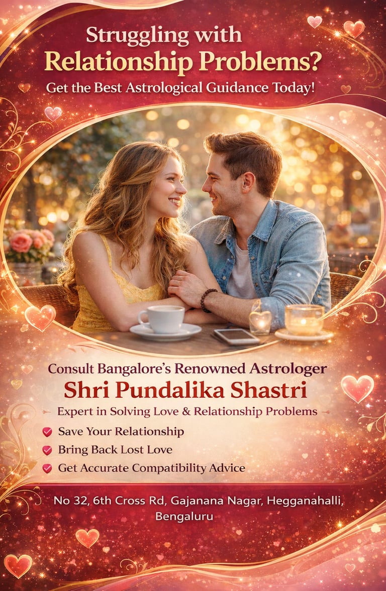 If you are searching for an experienced astrologer in Nagarabhavi who provides ethical, confidential, and personalized relationship guidance, Shri Pundalika Shastri offers consultations focused on long-term understanding and emotional balance. His services are intended to support individuals in navigating relationship challenges with awareness and responsibility.