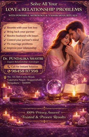 People seeking a relationship astrologer in Bengaluru often look for clarity during emotionally confusing situations. Astrology can provide perspective, helping individuals understand recurring patterns and make informed decisions. Guidance is offered in a practical and ethical manner, encouraging self-awareness and emotional responsibility rather than dependency.