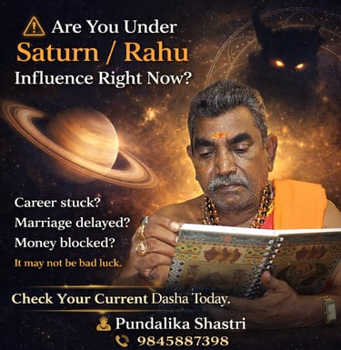 Are you feeling constant delays in life? Is your career stuck even after hard work? Are you facing repeated obstacles in marriage or financial growth? According to Vedic astrology, strong Saturn (Shani) or Rahu influence in your horoscope can create unexpected challenges. If you are searching for the best astrologer in Nagarabhavi, Pundalika Shastri offers trusted and result-oriented astrology consultation to identify and resolve planetary doshas effectively.