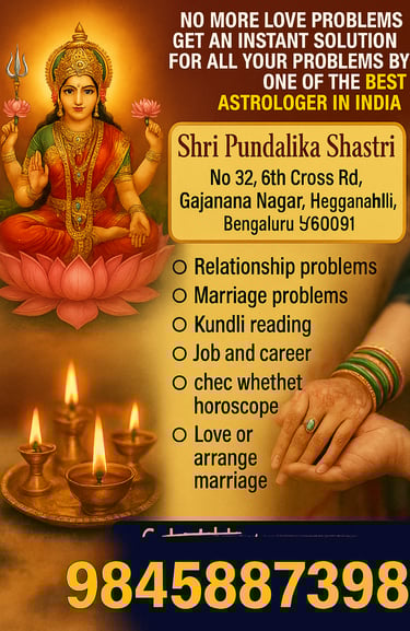 Located at No. 32, 6th Cross Road, Gajanana Nagar, Hegganahalli, Bengaluru 560091, Shri Pundalika Shastri provides astrology consultations for relationship understanding, marriage compatibility, Kundli reading, and horoscope analysis. Many individuals look for dependable astrological guidance, and his sessions are designed to offer clarity rather than unrealistic promises. His focus is on explaining planetary influences and how they may relate to various aspects of life such as career, personal relationships, and family decisions.