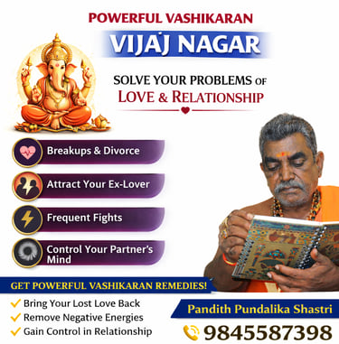 Are you facing challenges in your love life or struggling with relationship issues? Finding the right guidance can make a significant difference. If you are searching for a trusted Vashikaran specialist in Vijay Nagar, Bangalore, you are in the right place. With years of experience in traditional astrology practices, we provide ethical and personalized astrology solutions to help individuals navigate emotional and relationship difficulties with clarity and confidence.